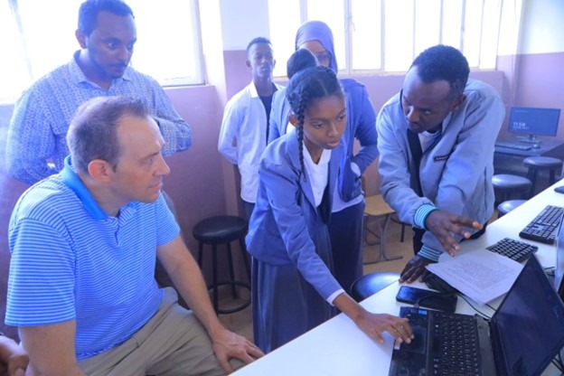 In March, 2025, Harari Region, Ethiopia – Dr. Nate Woods, Chairman of the STEM Synergy Board, recently visited the Harari STEM Center at Aboker Secondary School, a facility established by STEM Synergy in 2019 to provide hands-on STEM education. The center equips students with critical science, technology, engineering, and mathematics (STEM) skills, preparing them for future careers in innovation and technology.